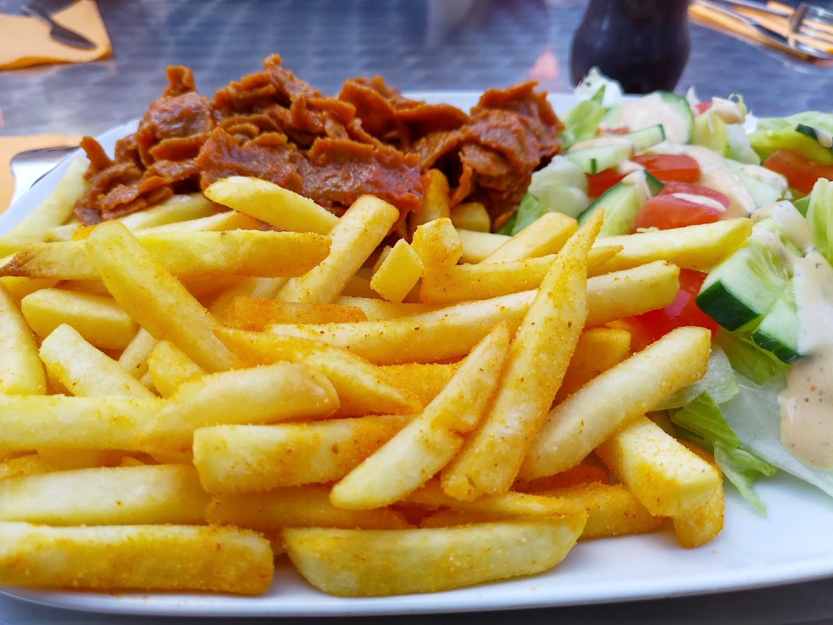 If you're in the mood for something light and crispy, the Kebab Ranskalaiset Kebab with Fries is a great choice. This dish features tender, flavorful kebab meat served with a generous portion of crispy fries, offering a delicious contrast of textures and tastes.